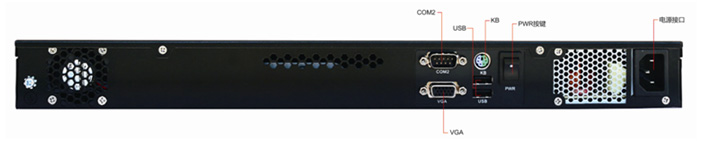 设备背面:接口:VGA*1,USB*2,COM2*1,KB*1,电源接口*1