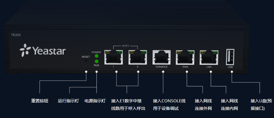 朗视TE系列数字中继网关,针对电信运营商和企业用户而设计,支持1~2个E1(30B+D)接口,具备全并发语音处理能力;支持SIP协议与PRI/7号信令,支持语音、传真等服务,与软交换系统互通性良好,可满足在不同网络环境下的组网应用需求。